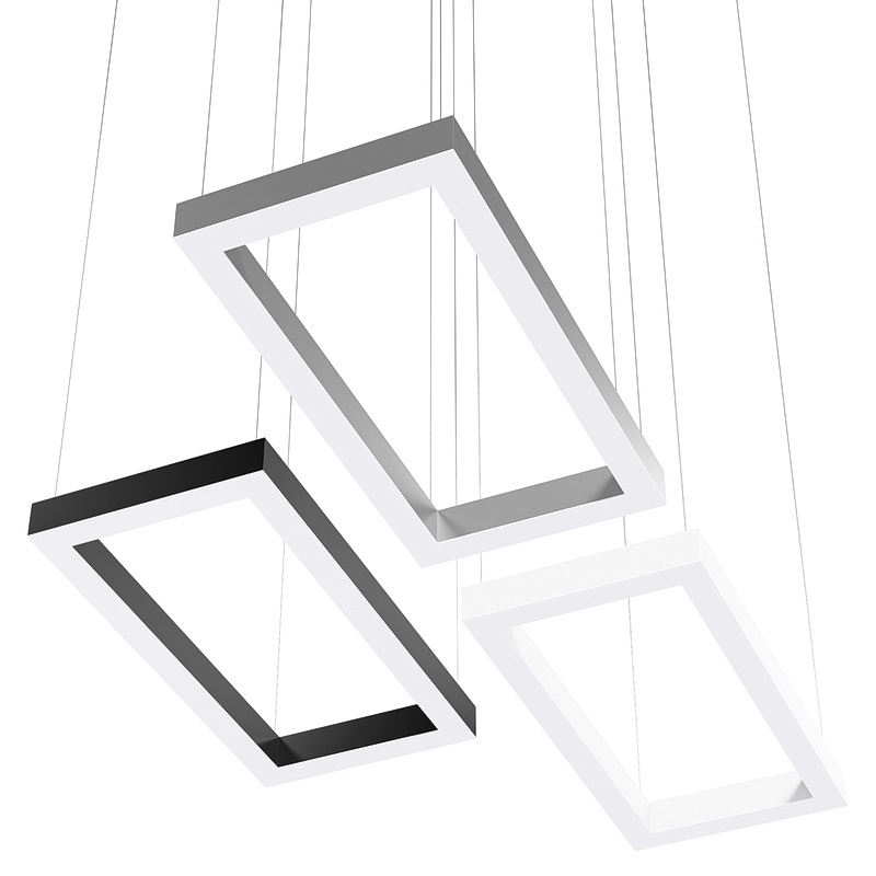 Корпус светильника прямоугольной формы может быть выполнен в черном, белом и сером цветах. Цветовая температура на выбор: теплый цвет (3000К), нейтральный (4000К) или холодный (6500К). Материал корпуса – металл, размеры на выбор. Вариант монтажа – подвесной потолочный.